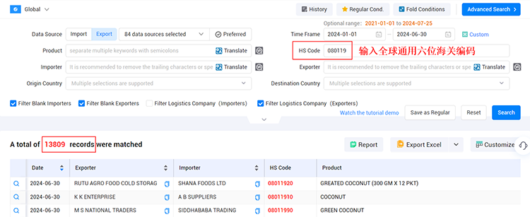 在Ebpay海关数据查询平台中,输入准确的HS Code。如果你不确定要开发的国家,可以使用前6位海关编码进行搜索。前6位编码在全球范围内统一,可以帮助你找到更多的潜在客户。