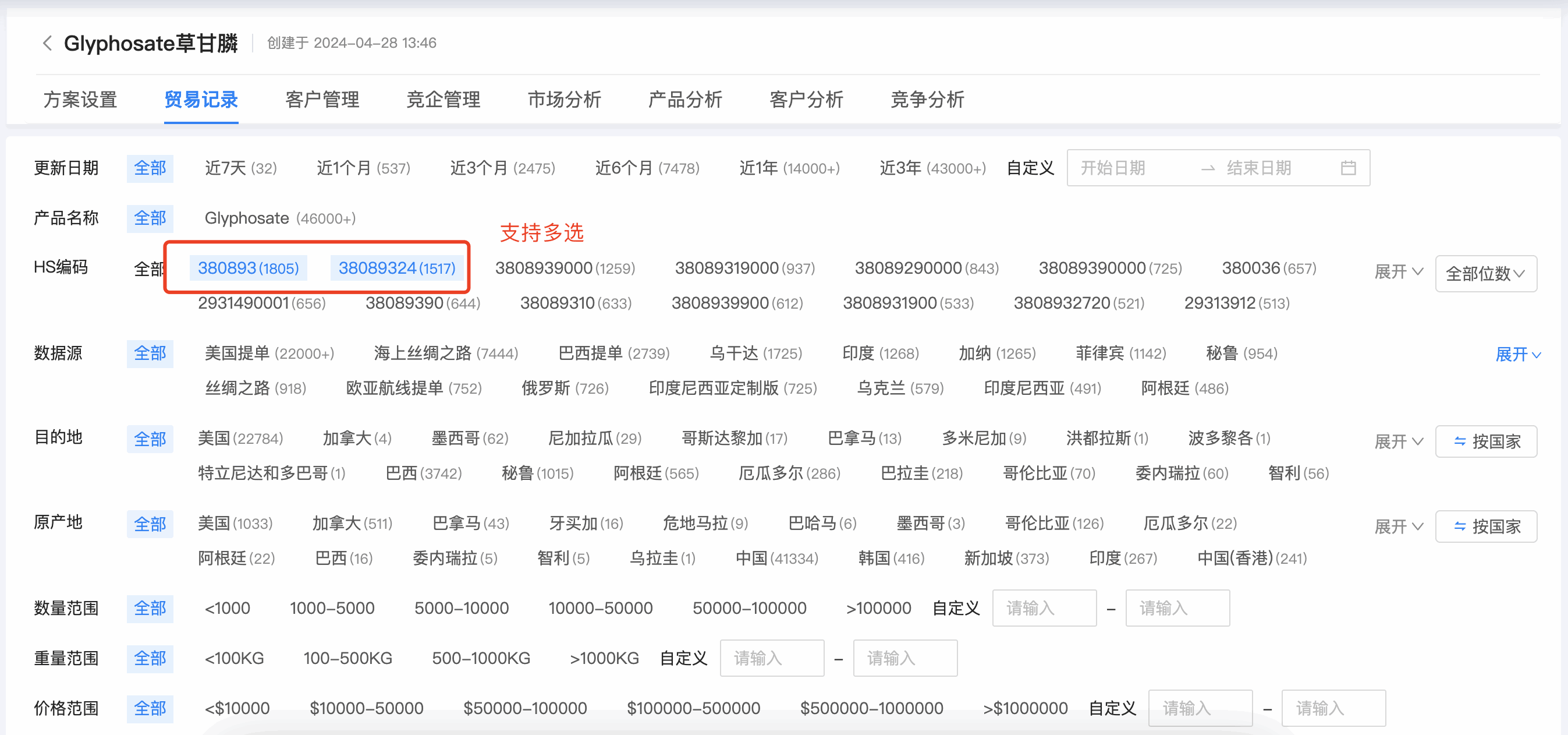 Ebpay > 行业资讯 > Ebpay数据通产品更新——贸易记录可按照编码筛选