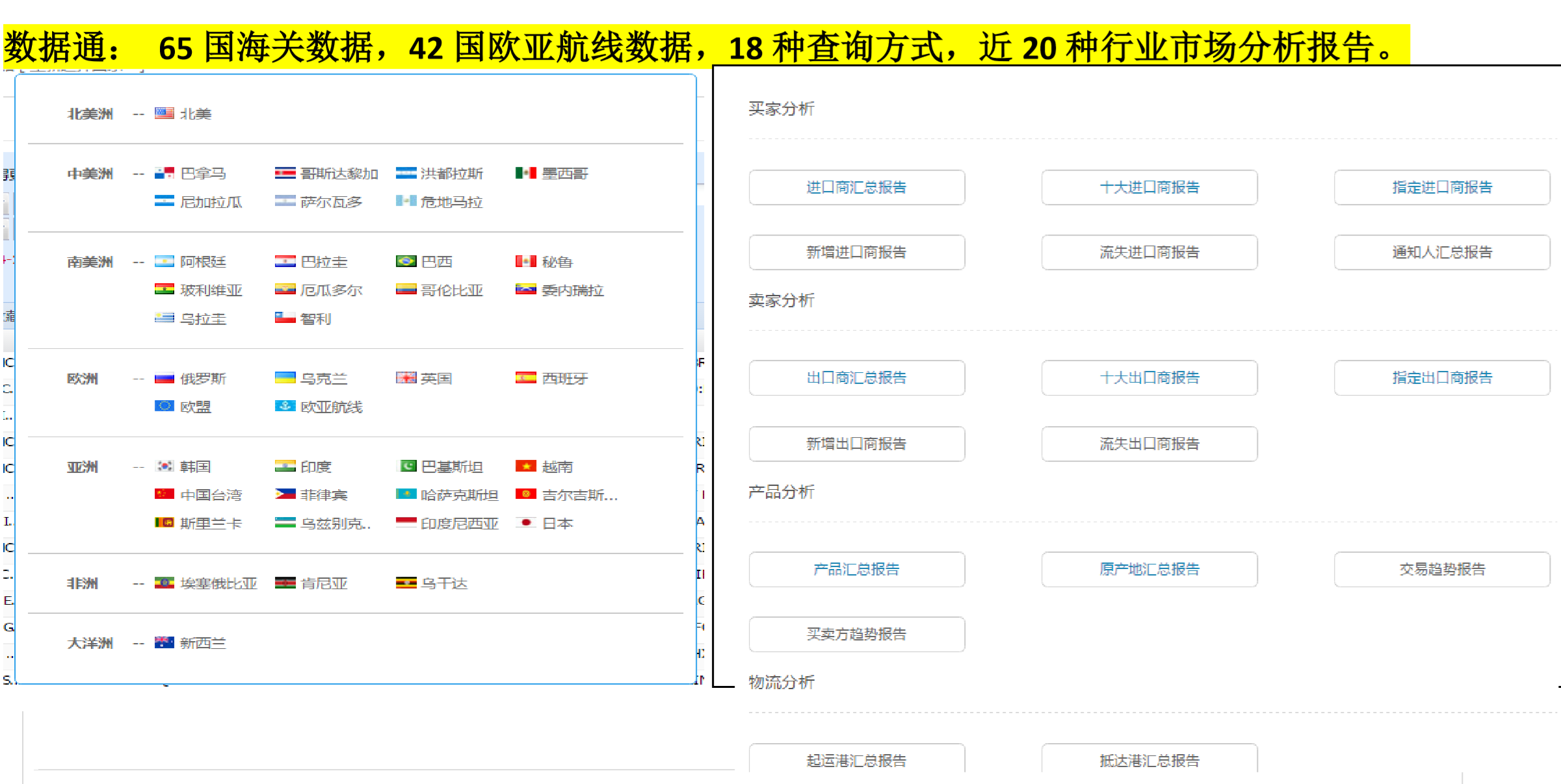 Ebpay海关数据库,实时给予全球涵盖65国海关数据,42国欧亚航线数据,100+亿实时贸易数据,定位1.8亿全球企业信息,帮助您分析全球市场贸易趋势及分布,为您的产品快速、精准、科学地锁定热销国家和新兴市场。